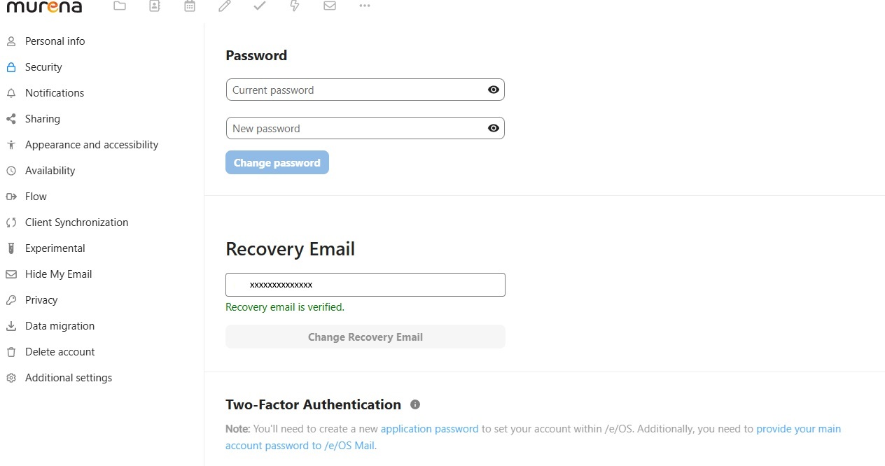 - Ensure you add a valid recovery email address to your Murena Workspace account. The recovery email is important in case you lose access to your Murena Workspace account for any reason.